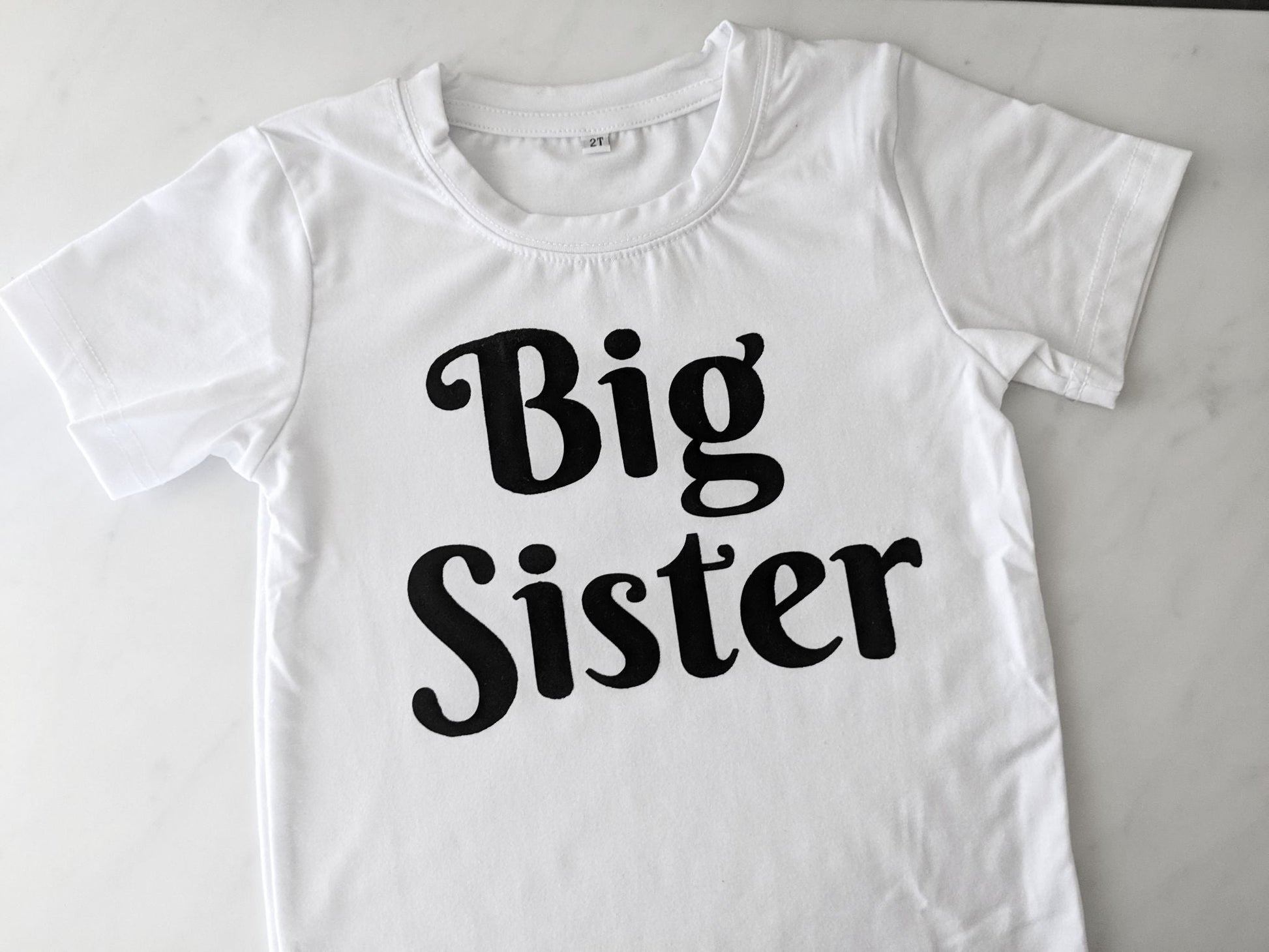 Help spread the news with this adorable big sister tee! Perfect for a pregnancy announcement photoshoot, a gift for new parents, or a big sister! This super soft and comfy t-shirt is handmade with the screen printed phrase “Big Sister”