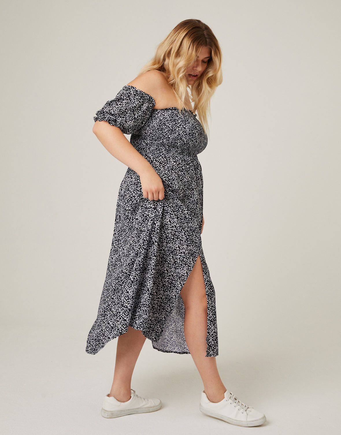 The new Curve Off-The-Shoulder Midi Dress is a great option for a simple summery outfit.
