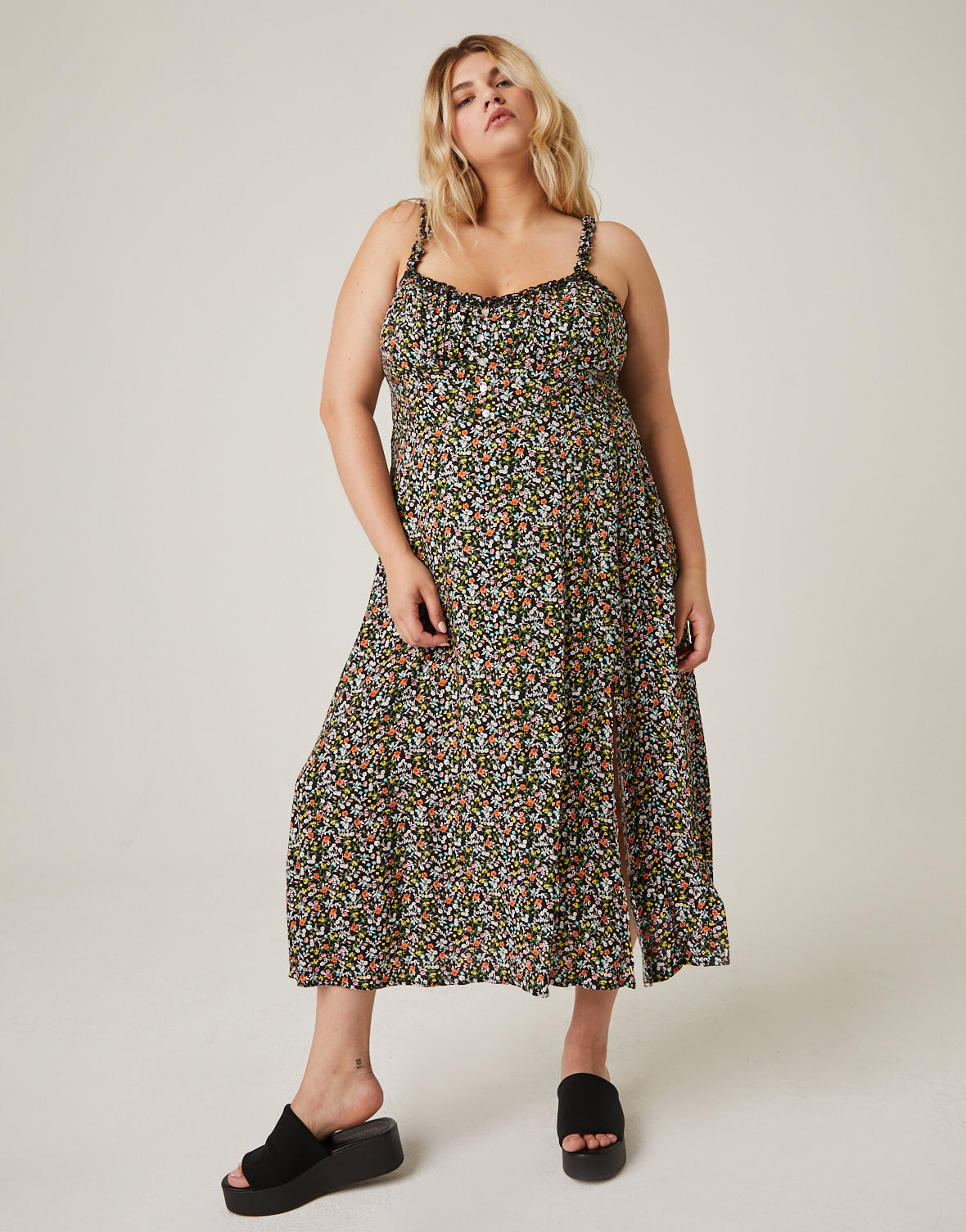 The Curve Ruffle Strap Floral Sundress is a fun, casual dress for summer days.