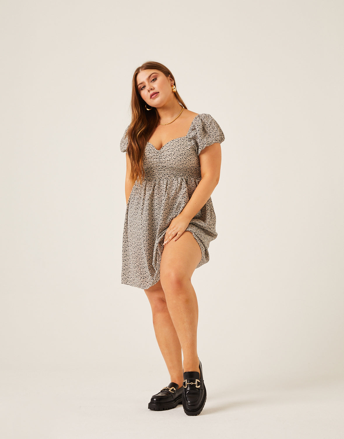 - This cute dress features a?sweetheart neckline, a tie at the upper back, an elastic waist, and short puff sleeves.