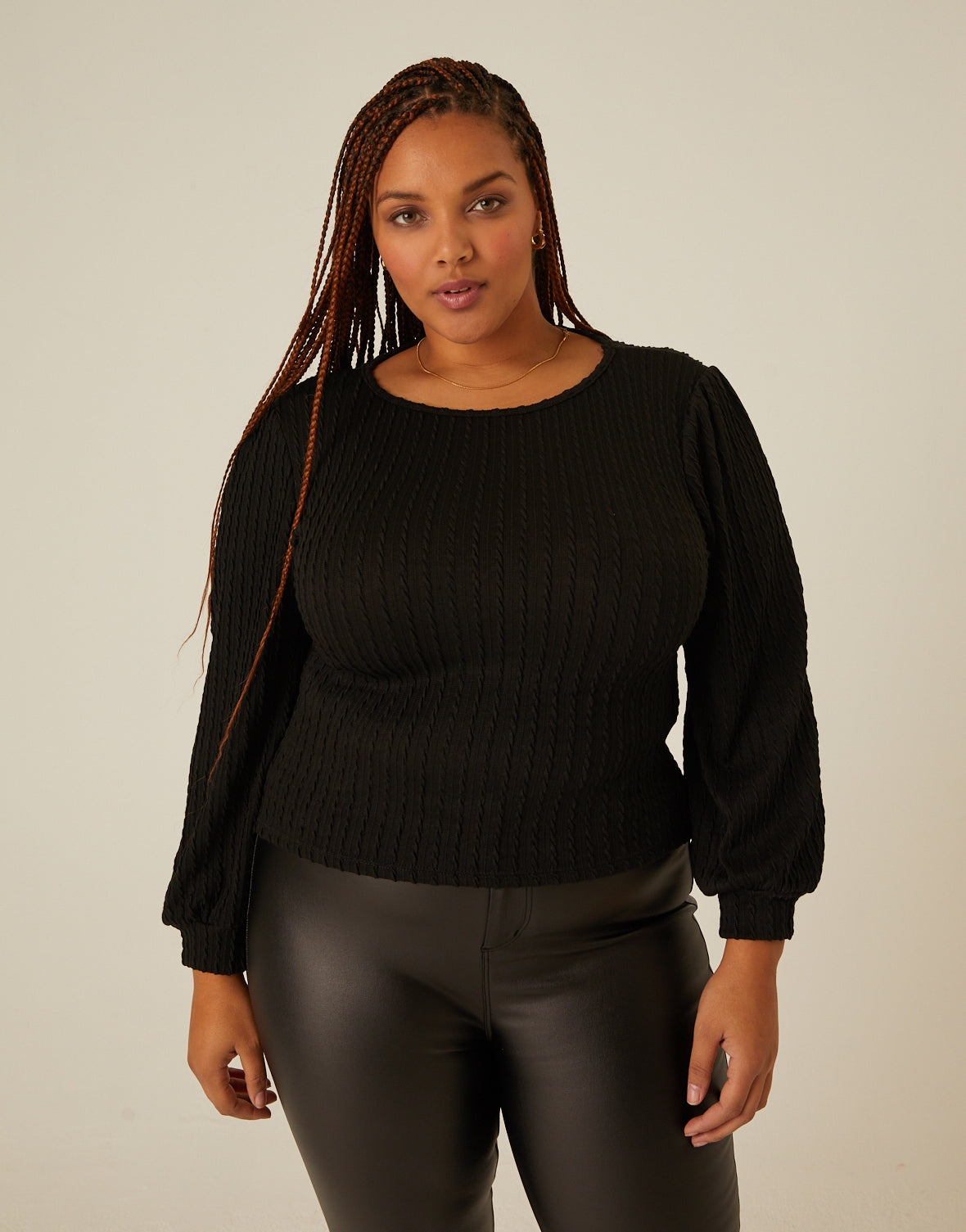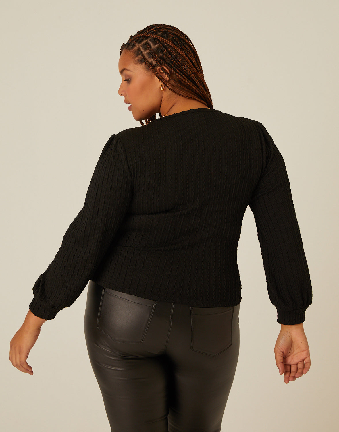 Plus Size Twist Knit Long Sleeve Top