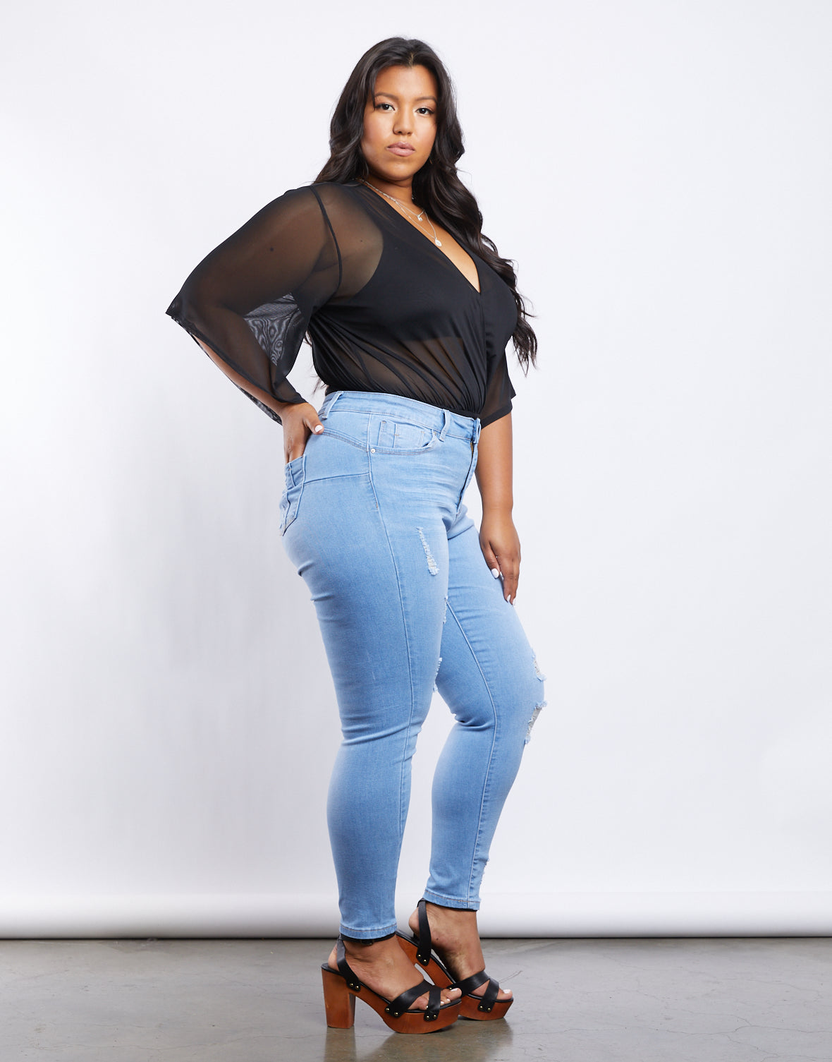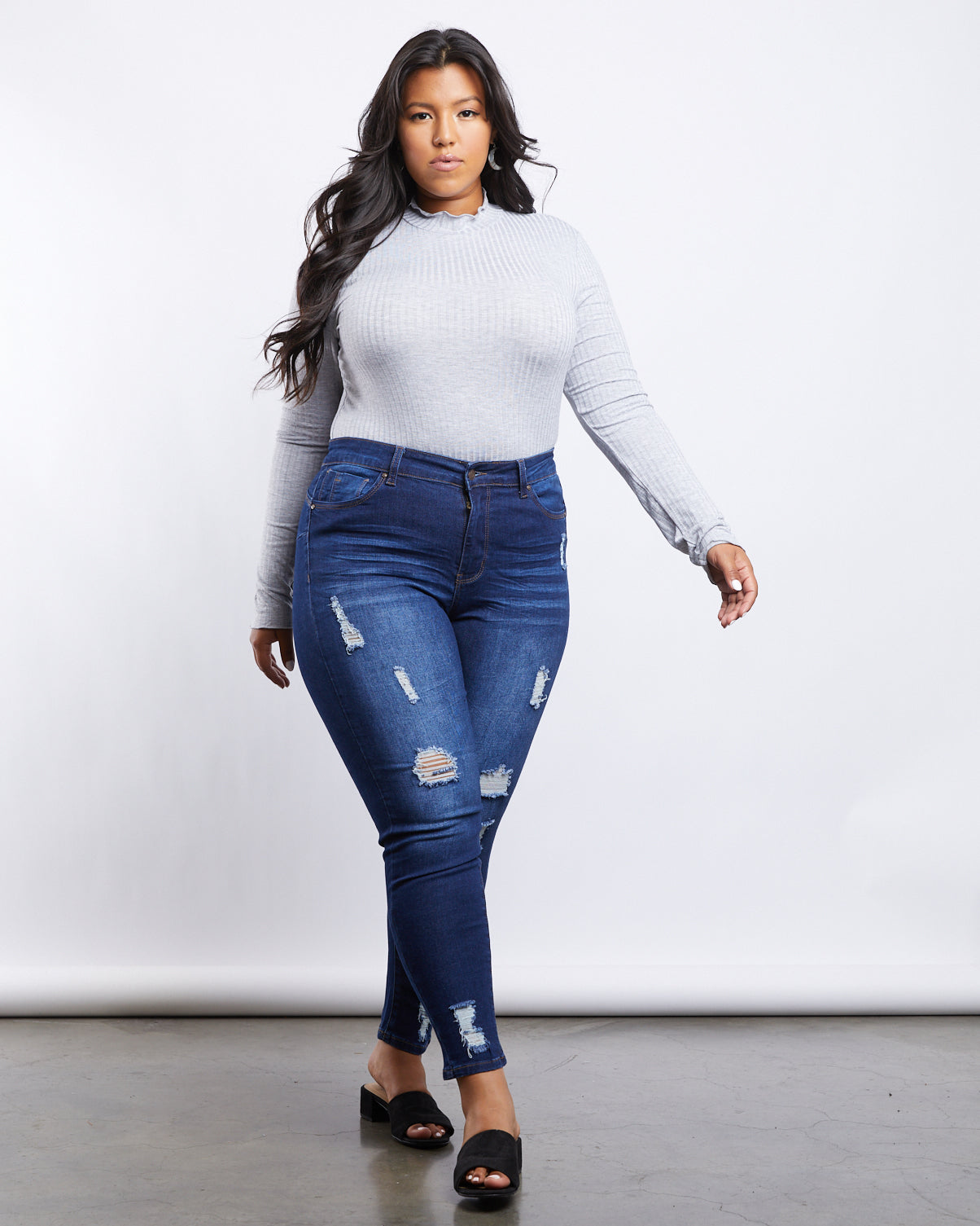 Figure-flattering denim? You've got it in the Curve Lilia Ripped Jeans. Made of a soft, stretchy, lightweight material,?these jeans are a great addition to your everyday wardrobe.?Their?mid-rise and slim fit pair perfectly with distressed detailing and flattering back pockets. Opt for a t-shirt and sneakers for your everyday chic or channel your inner fashionista with a peasant top and chunky heels.