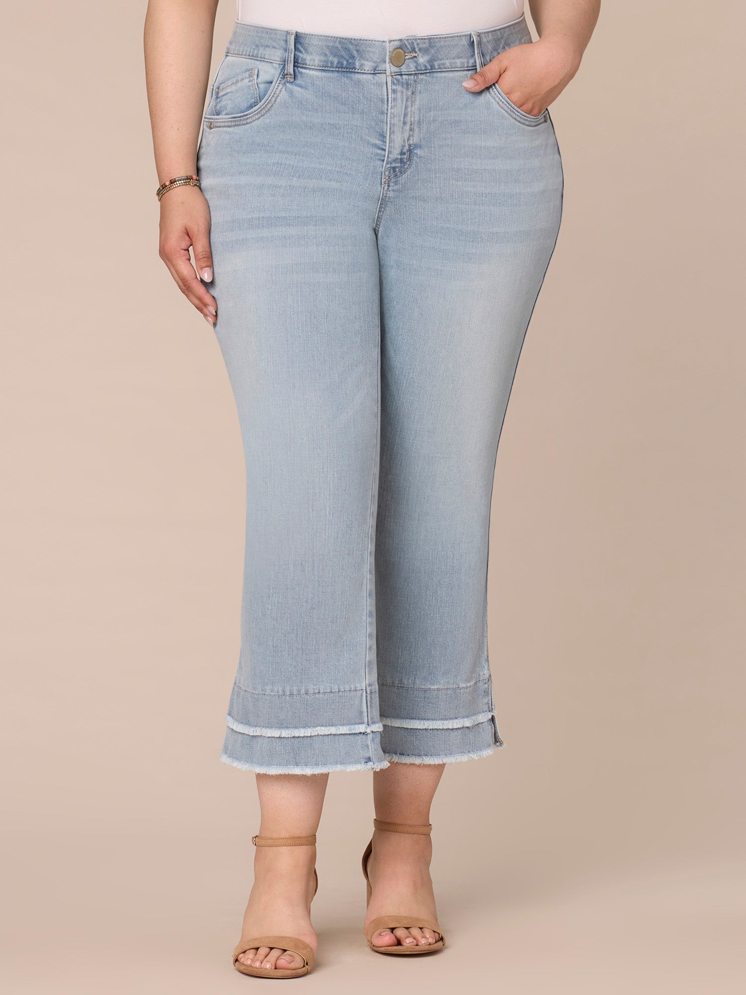 Absolution Mid-Rise Double Layer Fray Hem Flare Plus Size Jeans