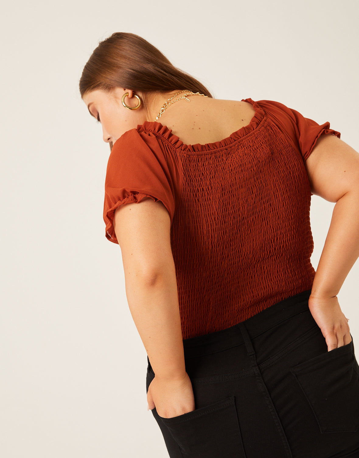 Feminine puff sleeves round out the simple yet elevated?Curve Chiffon Smocked Back Blouse. This feminine, plus size top is casual enough to wear to school or out with friends, but easy enough to dress up and wear to work. It's simply the difference between pairing it with a pair of or with some statement .