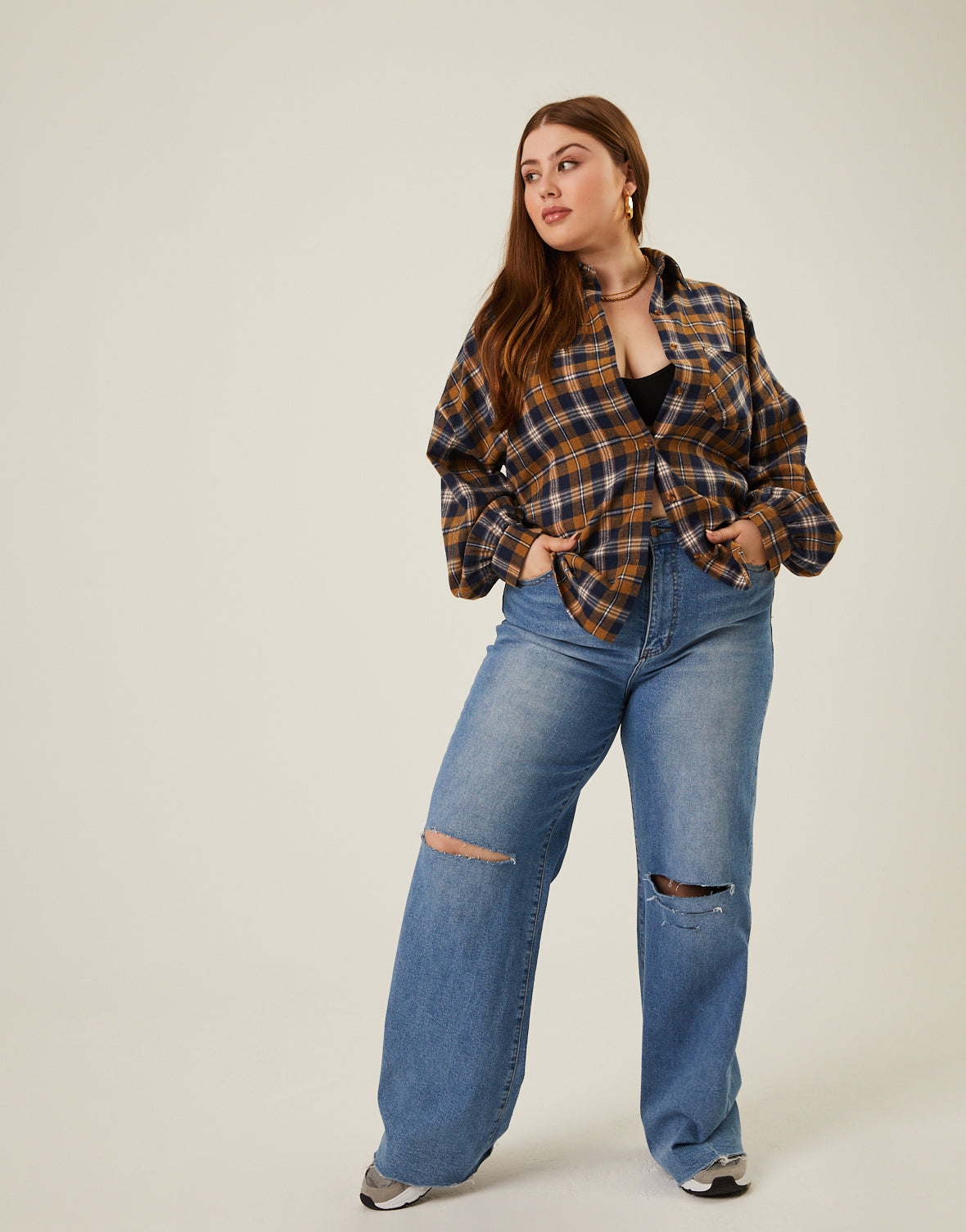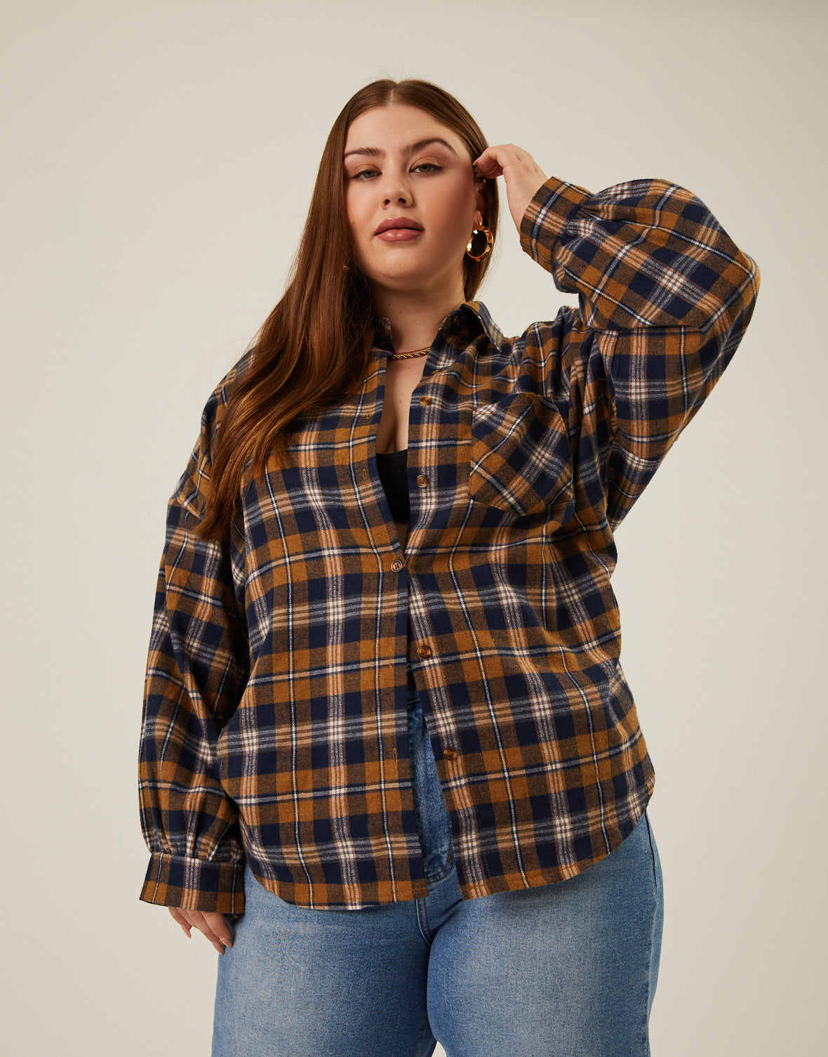 The?Plus Size Comfy Plaid Flannel Shirt is a great fall staple to layer under and over for warmth.