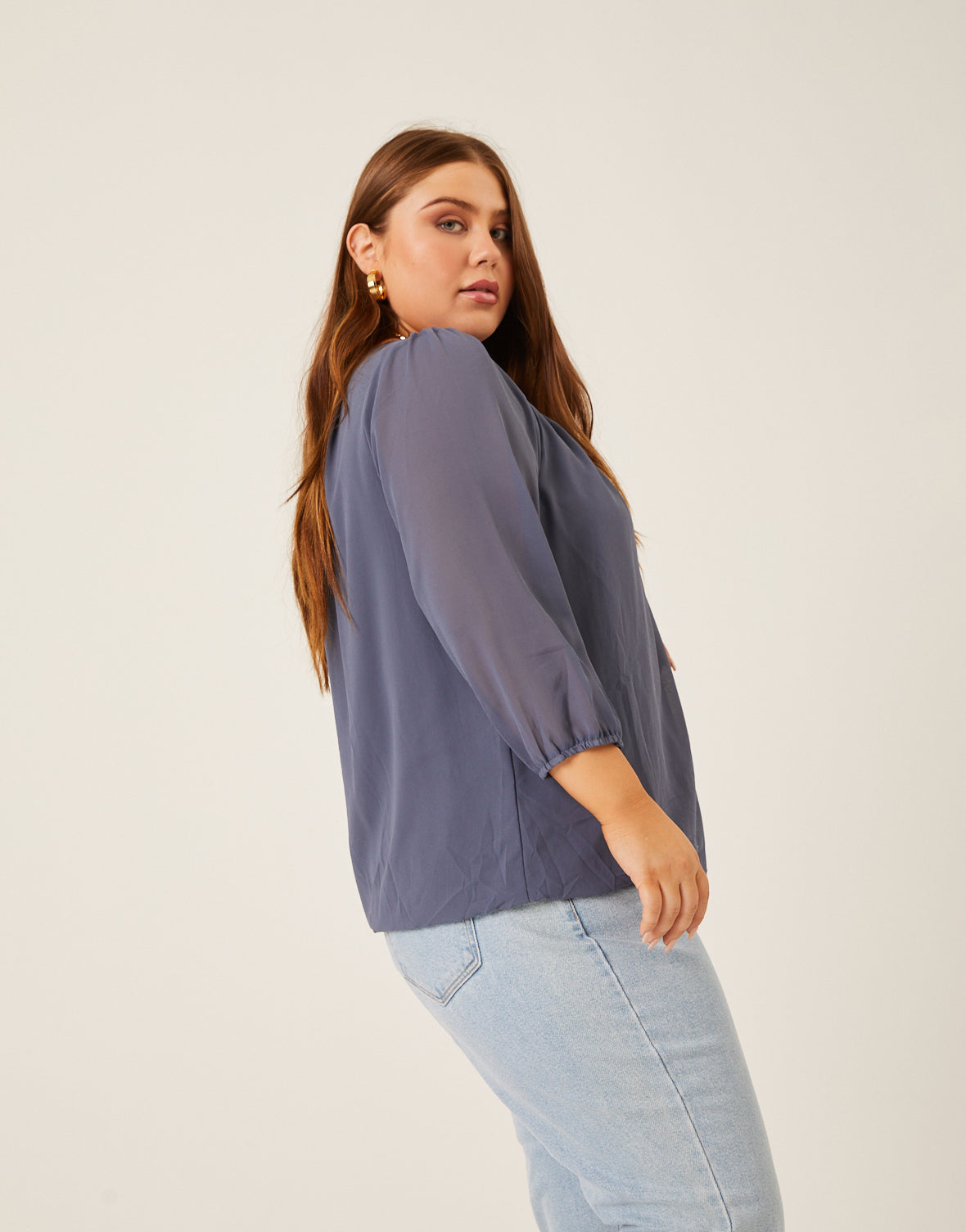 Plus Size Flowy Long Sleeve Chiffon Blouse