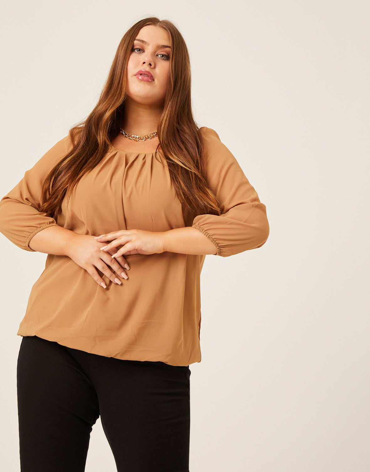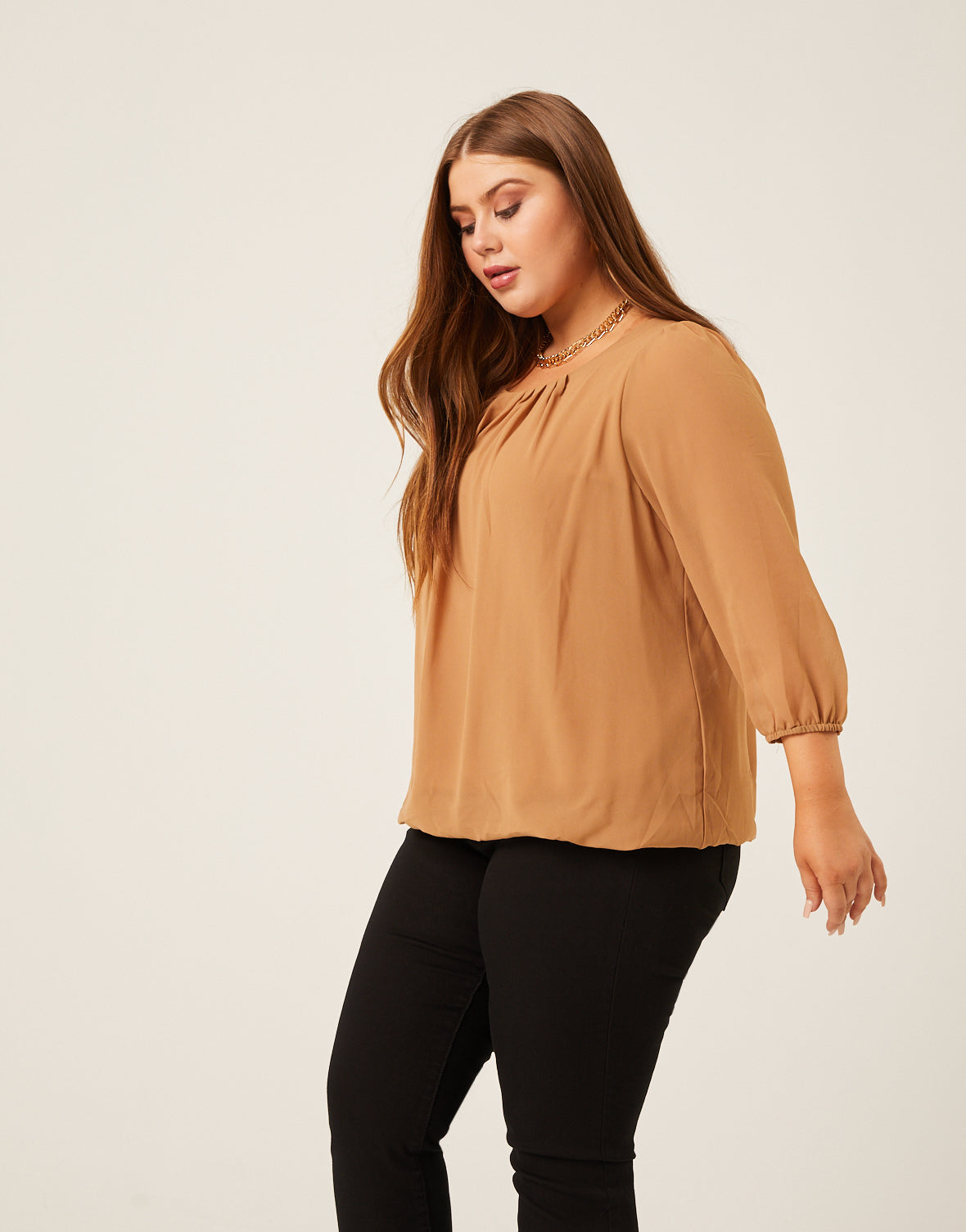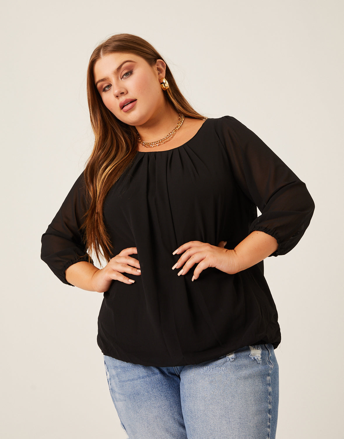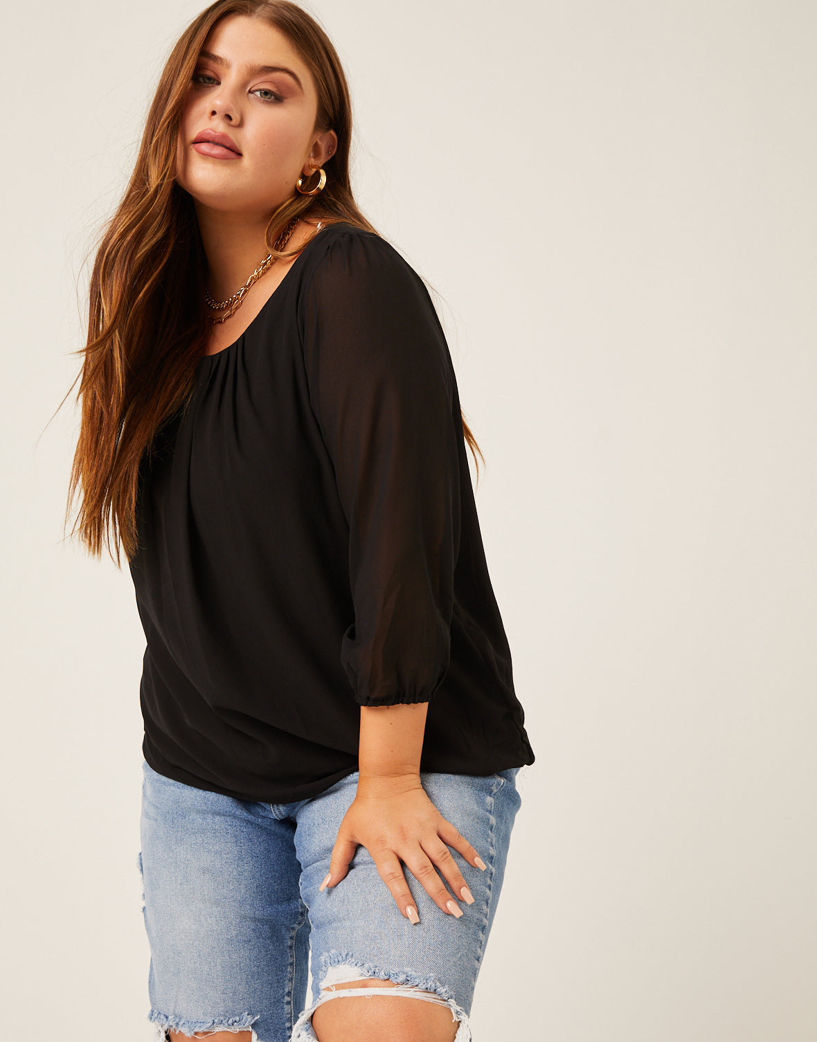 Sheer chiffon material and flatteringly flowy shape give feminine charm to the?Curve Flowy Long Sleeve Chiffon Blouse. This plus size chiffon top is super simple, which makes it a great option to pair with cute statement for a day at work or a street style outfit. Plus, it's lightweight enough to layer with a cute !