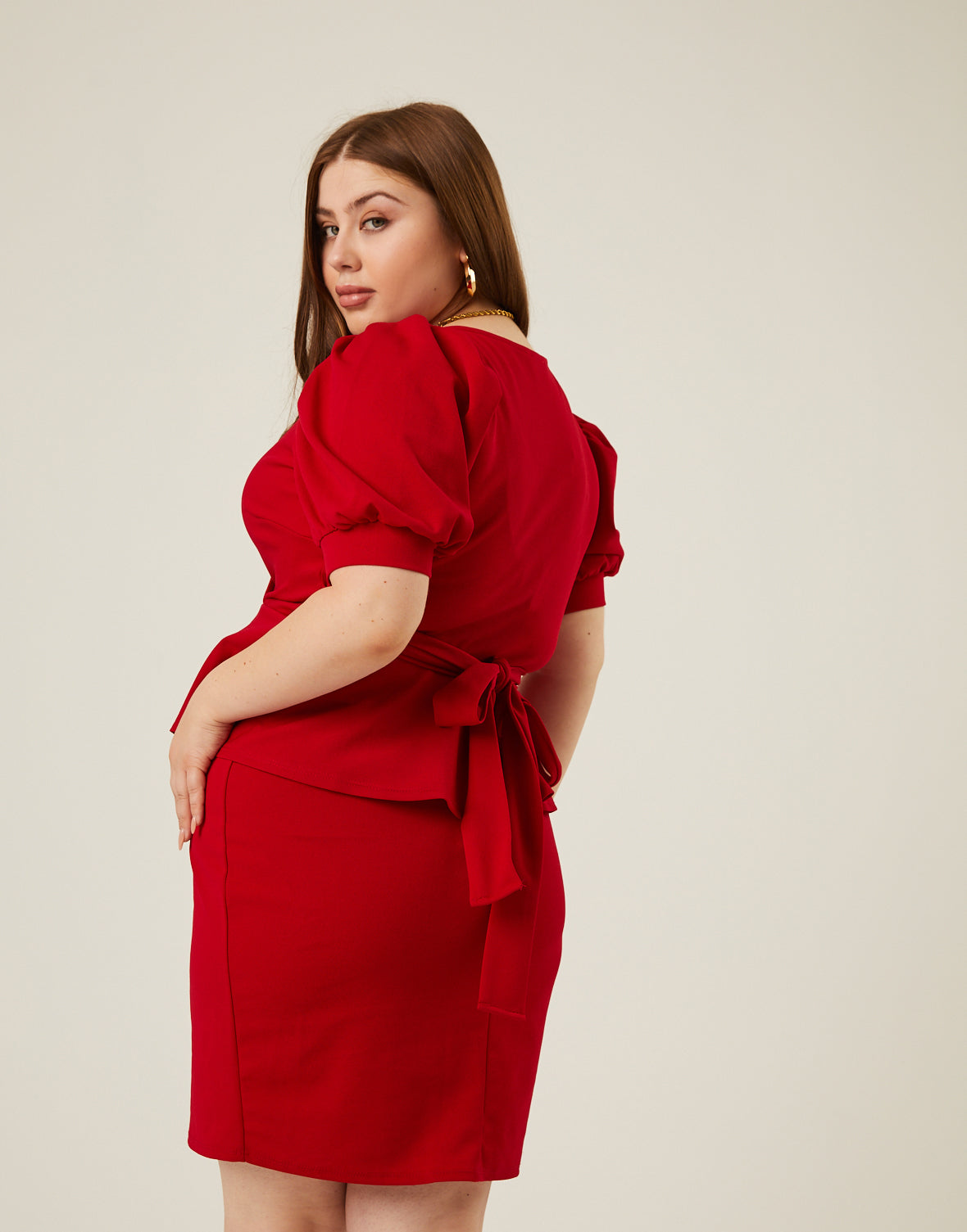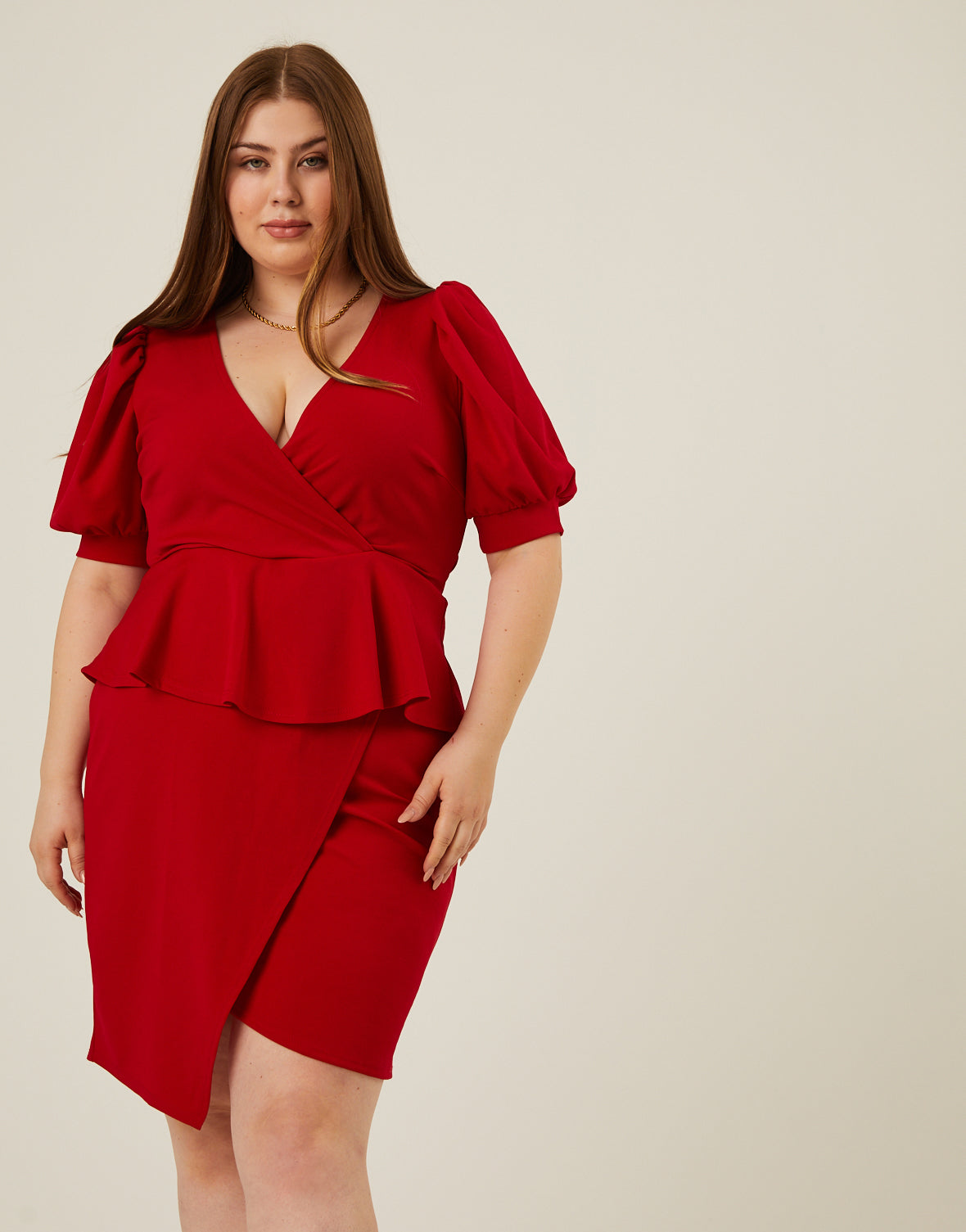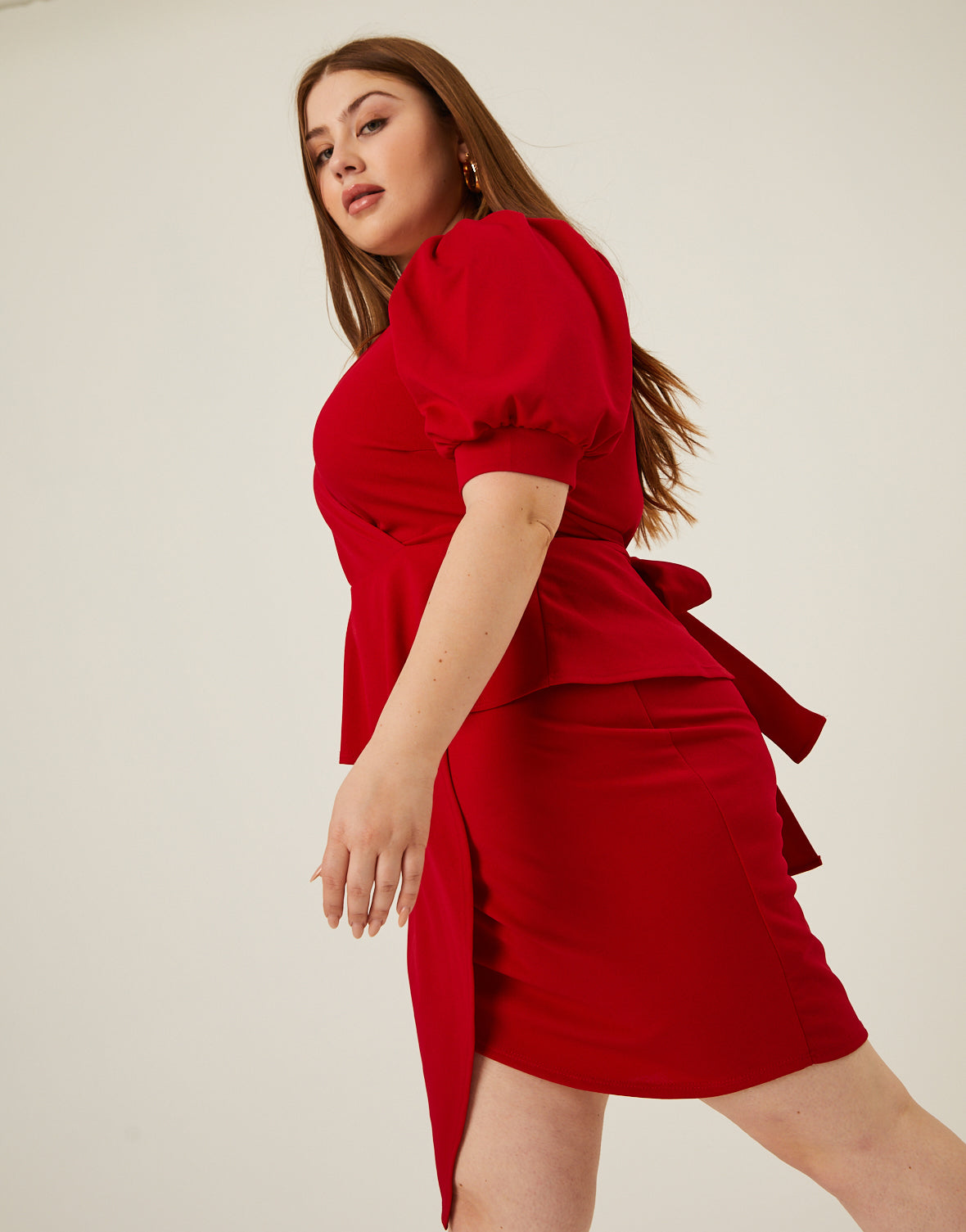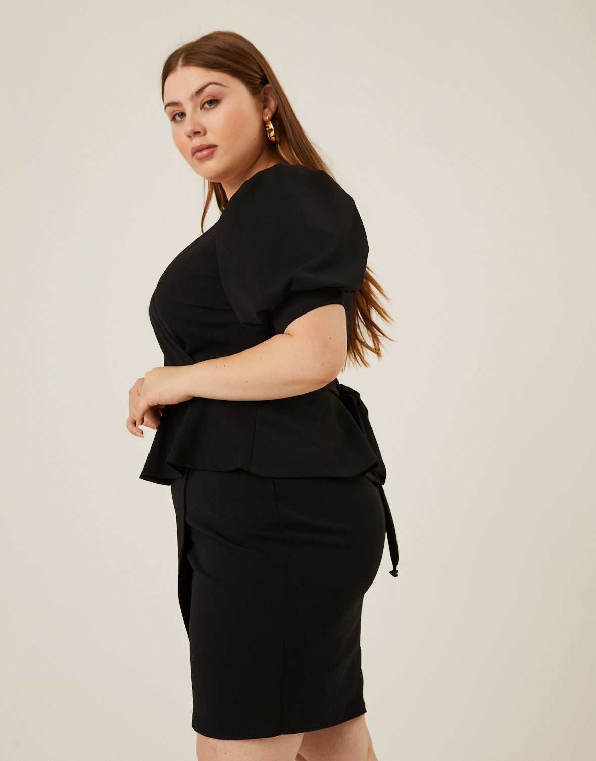 The?Curve Peplum Tie Belt Dress is a simple style with trendy details.