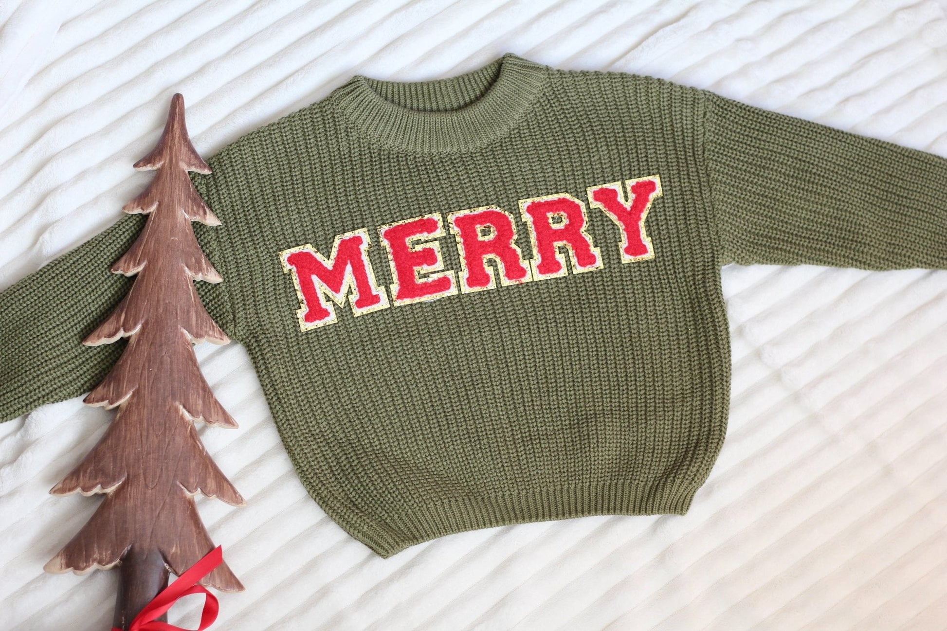 Celebrate Christmas with this green and red Merry sweater for a little one in your life, making them the cutest elf in Texas!